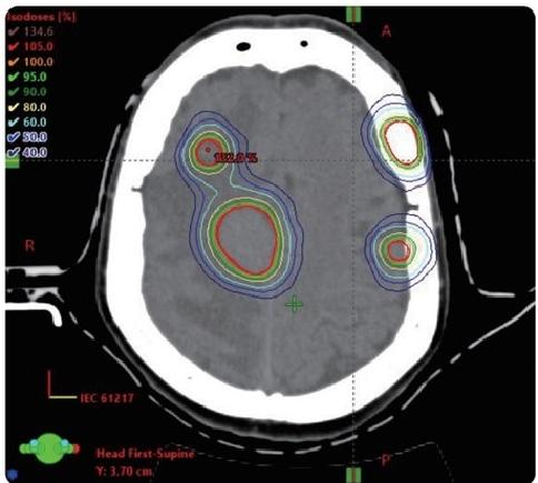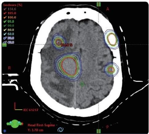 HyperArc is a non-coplanar stereotactic radiosurgery technology developed specifically for intracranial tumors. It has the characteristics of high precision, high efficiency and high automation. It has sub-millimeter accuracy and can complete the fixed-point radiosurgery treatment of several to dozens of brain metastases at the same time within 10 minutes, bringing better experience to patients with multiple brain me-tastases.